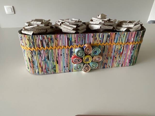 Een superleuk project om aan te werken.. eentje dat ik in de toekomst nog wel zal maken, maar dan net iets anders want ik wil geen 2 identiek dezelfde dingen maken.. Dit zou trouwens ook niet lukken door het basismateriaal: ik werk enkel met papier dat anders zou weggegooid worden..